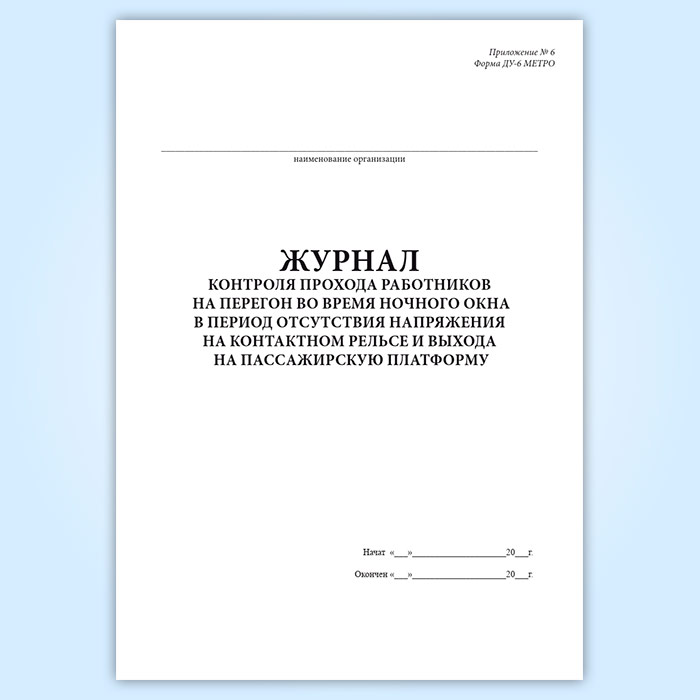 Журнал контроля прохода работников на перегон во время ночного окна в период отсутствия напряжения на контактном рельсе и выхода на пассажирскую платформу (форма ДУ-6 МЕТРО) в Рошале купить