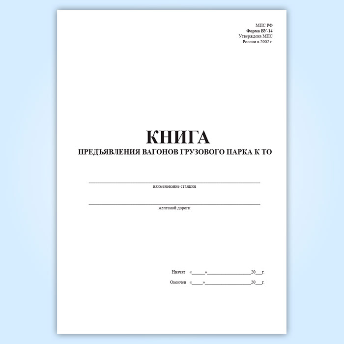 Книга предъявления вагонов грузового парка к ТО (форма ВУ-14) в Рошале купить