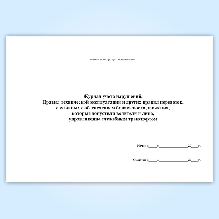 Журнал учета нарушений, правил технической эксплуатации и других правил перевозок, связанных с обеспечением безопасности движения, которые допустили водители и лица, управляющие служебным транспортом в Рошале купить