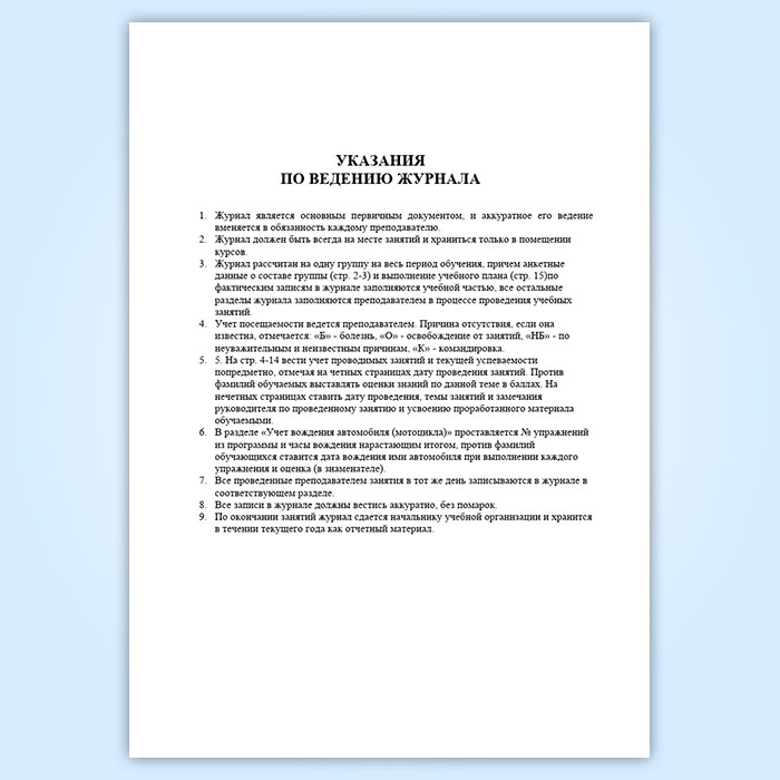 Журнал учета занятий по подготовке водителей транспортных средств категории «В» в Рошале купить