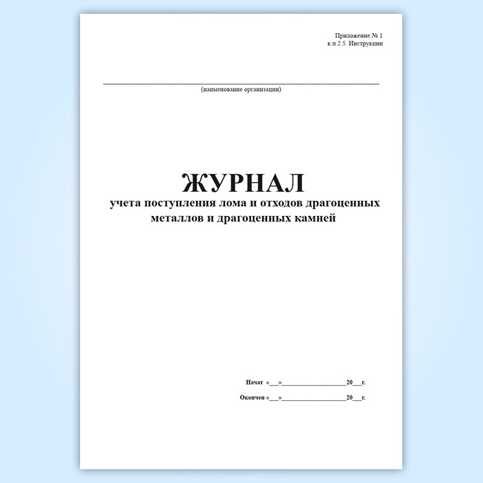 Журнал учета поступления лома и отходов драгоценных металлов и драгоценных камней в Рошале купить