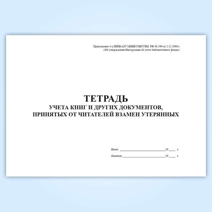 Тетрадь учета книг и других документов, принятых от читателей взамен утерянных в Рошале купить