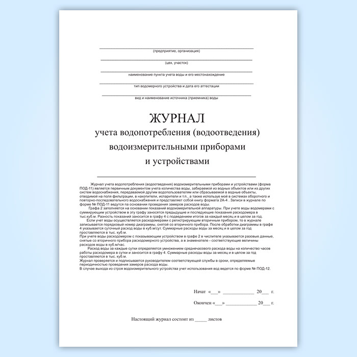 Журнал учета водопотребления (водоотведения) водоизмерительными приборами и устройствами (форма ПОД-11) в Рошале купить