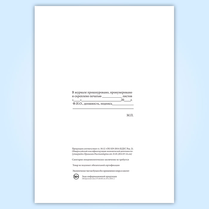 Вы получаете печатную продукцию прошнурованной и c местом для вашей печати в соответствии с действующими нормативными документами: