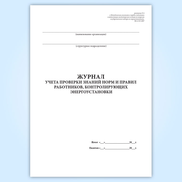 Журнал учета проверки знаний норм и правил работников, контролирующих энергоустановки в Рошале купить