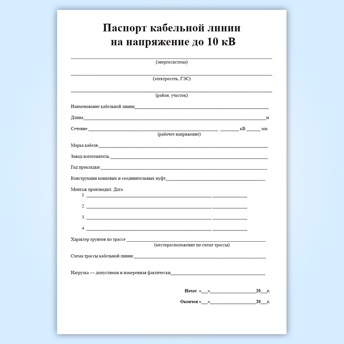 Паспорт кабельной линии на напряжение до 10 кВ в Рошале купить