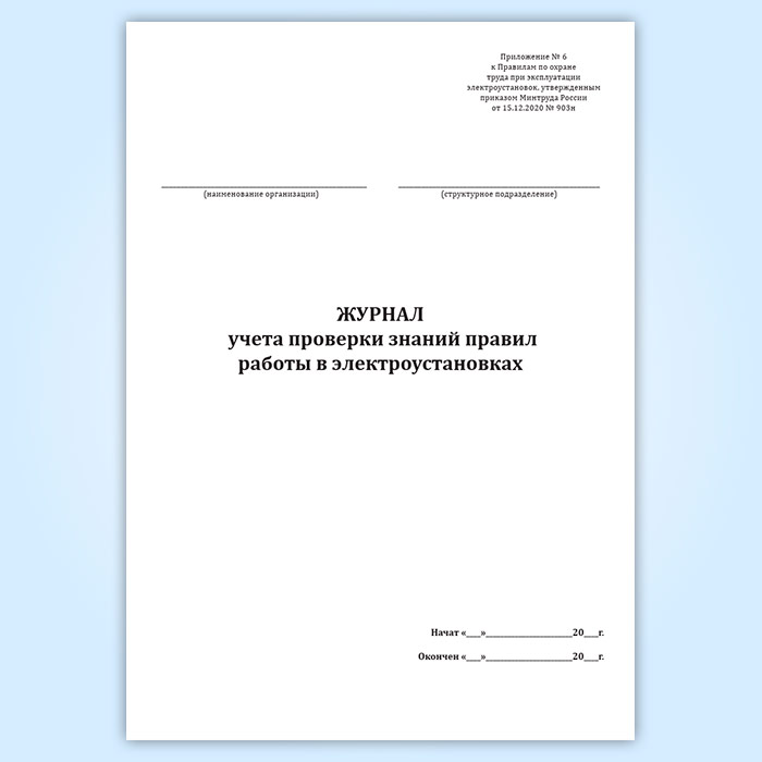Журнал учета проверки знаний правил работы в электроустановках (Приложение 6) в Рошале купить