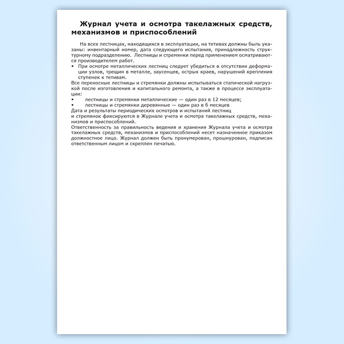 Журнал учета и осмотра такелажных средств, механизмов и приспособлений в Рошале купить
