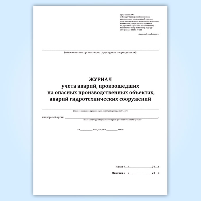 Журнал учета аварий, происшедших на опасных производственных объектах, объектах энергетики и гидросооружениях в Рошале купить