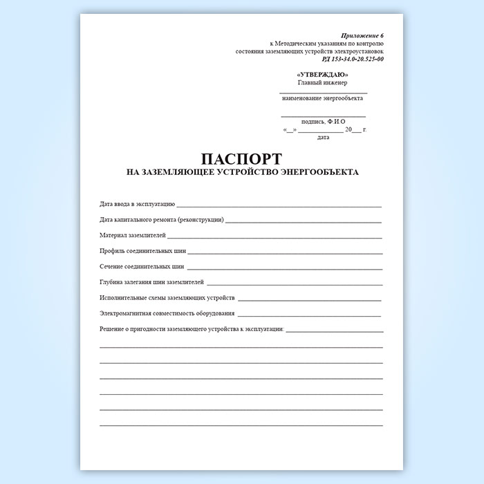 Паспорт на заземляющее устройство энергообъекта в Рошале купить