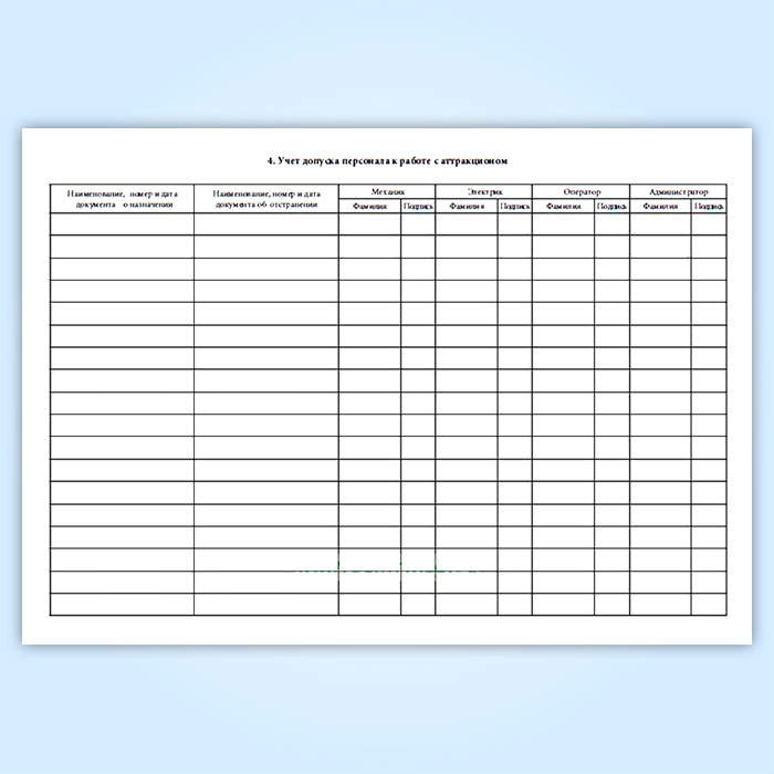 Журнал администратора. Учет допусков аттракциона к эксплуатации в Рошале купить