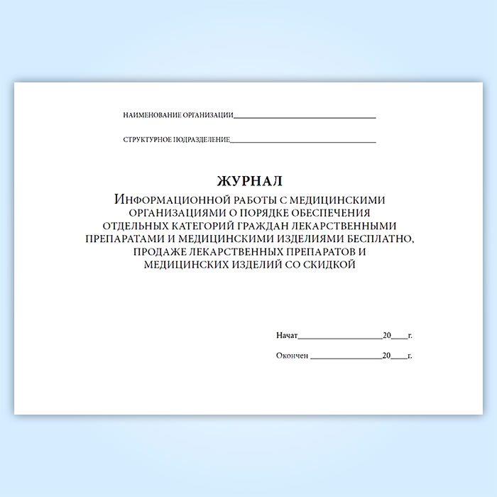 Журнал информационной работы с медицинскими организациями о порядке обеспечения отдельных категорий граждан лекарственными препаратами и медицинскими изделиями бесплатно, продаже лекарственных препаратов и медицинских изделий со скидкой в Рошале купить
