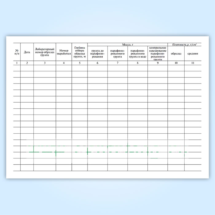 Журнал определения плотности грунта методом взвешивания в воде парафинированных образцов в Рошале купить