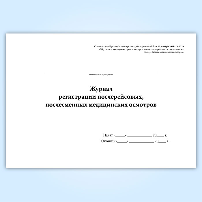 Журнал регистрации послерейсовых, послесменных медицинских осмотров в Рошале купить