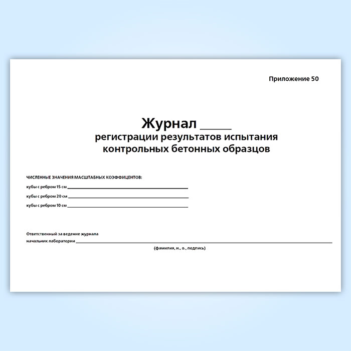 Журнал регистрации результатов испытания контрольных бетонных образцов в Рошале купить