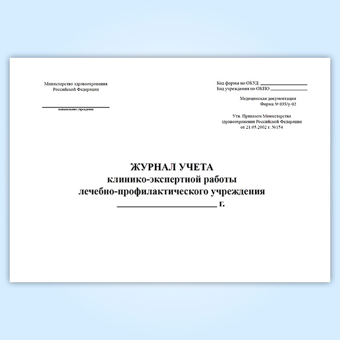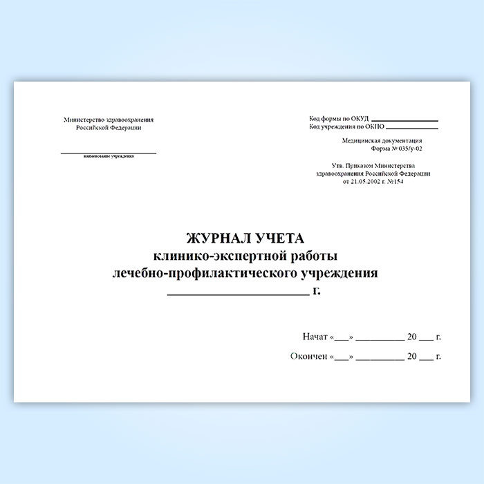 Журнал учета клинико-экспертной работы лечебно-профилактического учреждения (форма № 035/у-02) в Рошале купить