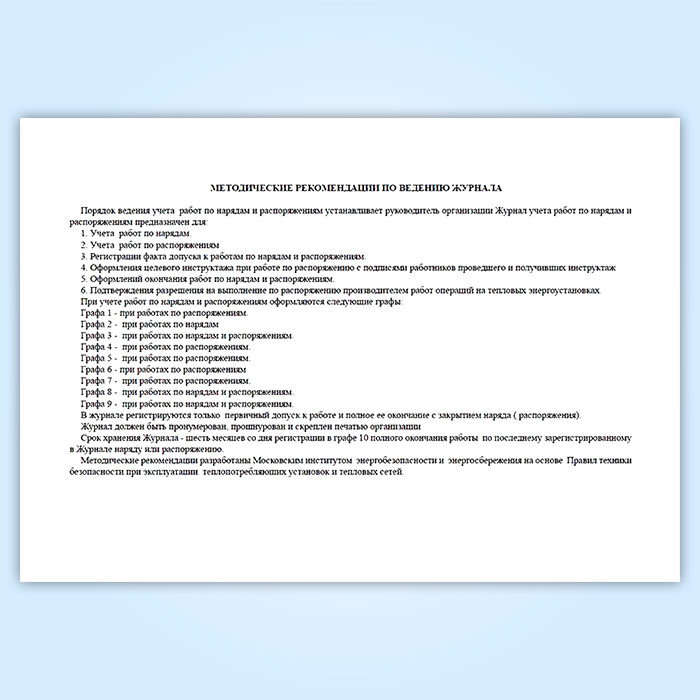 Журнал учета работ по нарядам и распоряжениям на тепловых энергоустановках в Рошале купить