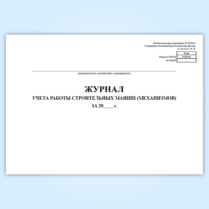 Журнал учета работы строительных машин (механизмов) (форма ЭСМ-6) в Рошале купить