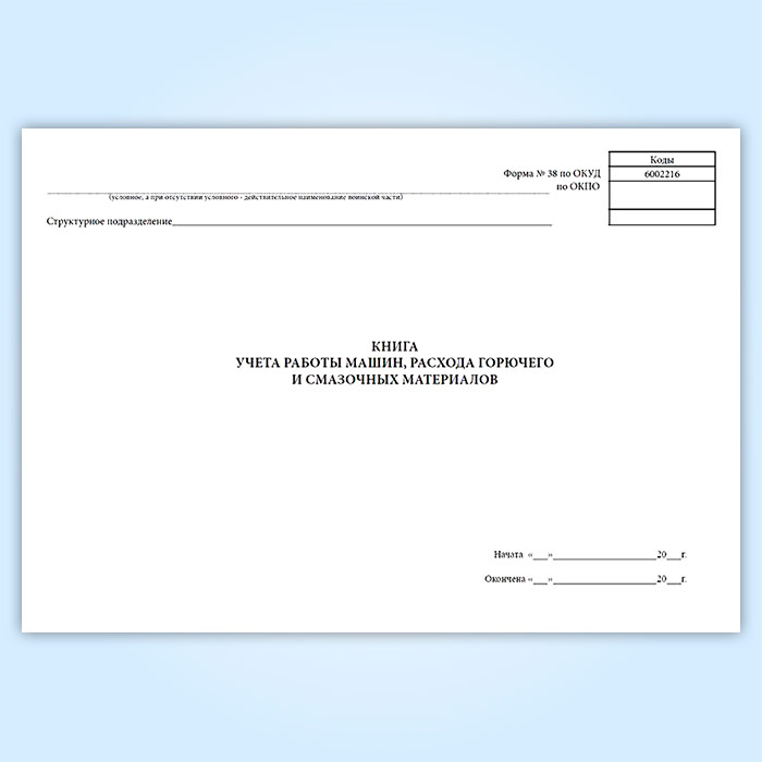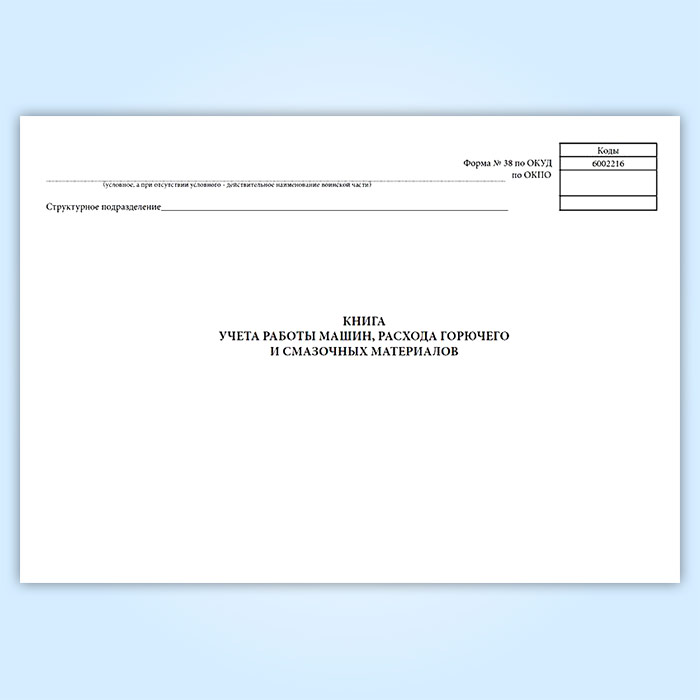 Книга учета работы машин, расхода горючего и смазочных материалов (форма 38, ОКУД 6002216) в Рошале купить