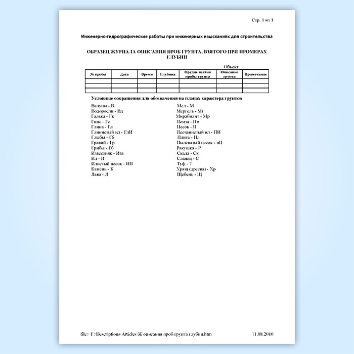Журнал описания проб грунта, взятого при промерах в Рошале купить