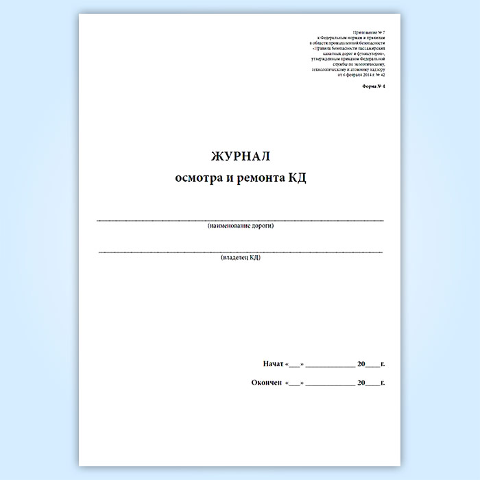 Журнал осмотра и ремонта канатной дороги. Натяжной канат к тяговому и несуще-тяговому канату (форма № 4) в Рошале купить