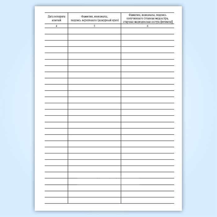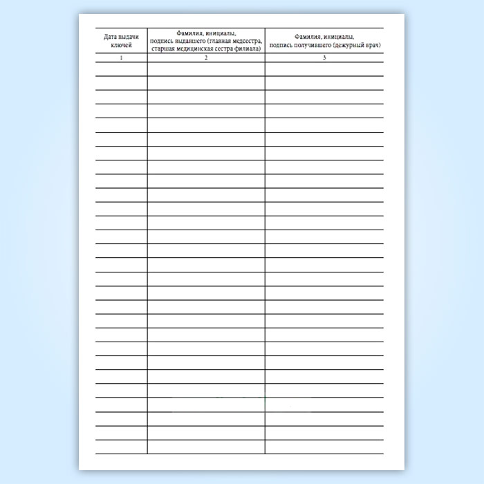 Журнал передачи ключей главной медсестры (старшей медицинской сестры филиала) дежурным врачам от помещения и сейфа, где проводятся операции, связанные с оборотом наркотических средств и психотропных веществ, в выходные и праздничные дни в амбулаторном отделении медицинской организации в Рошале купить