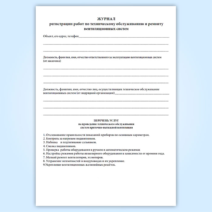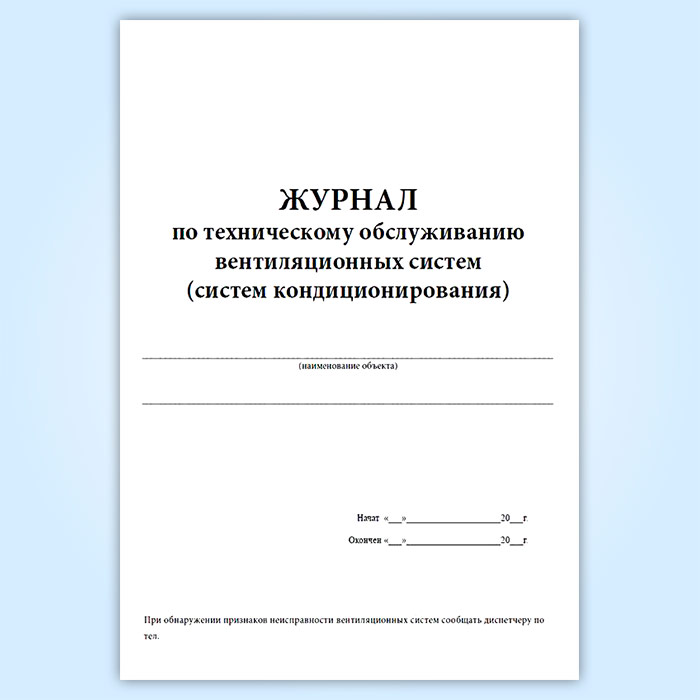 Журнал по техническому обслуживанию вентиляционных систем (систем кондиционирования) в Рошале купить