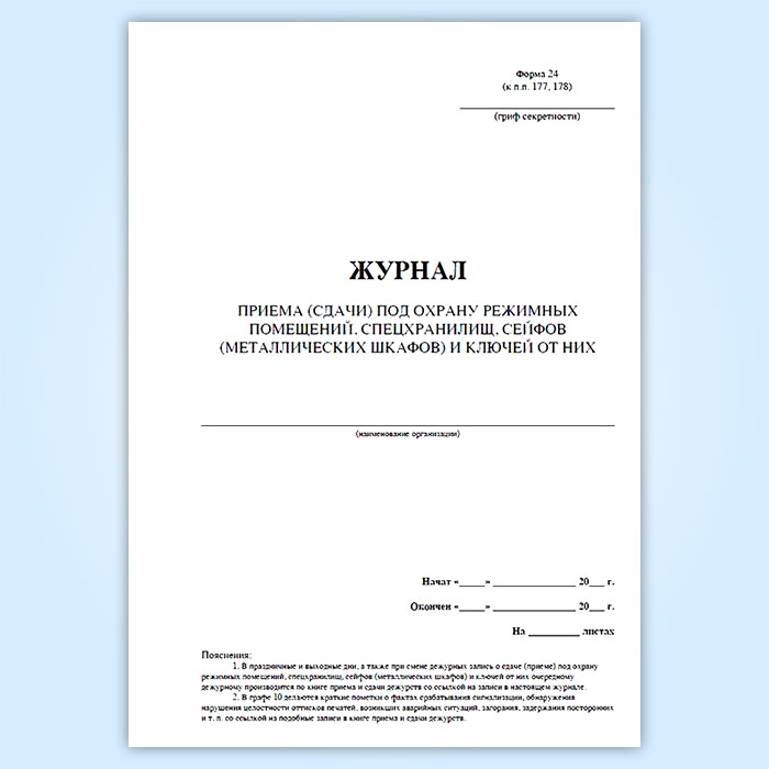 Журнал приема (сдачи) под охрану режимных помещений, спецхранилищ, сейфов (металлических шкафов) и ключей от них в Рошале купить