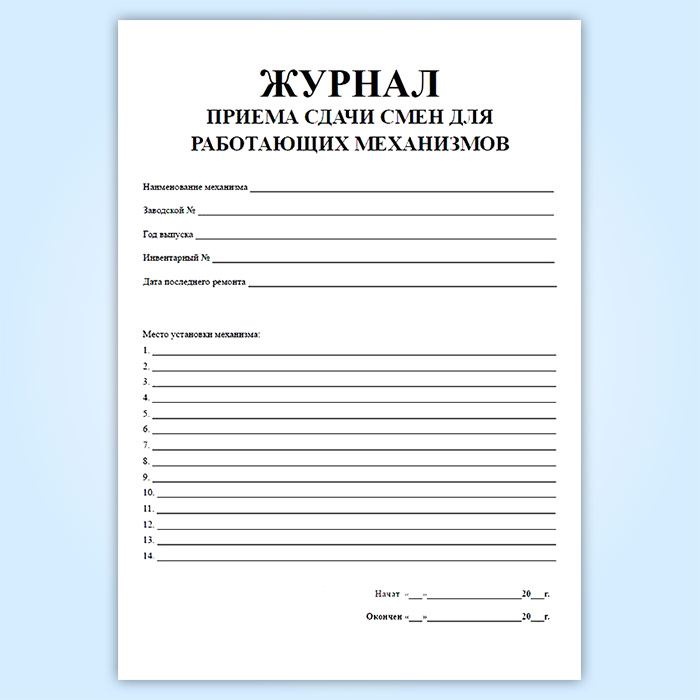 Журнал приема-сдачи смен для работающих на механизмах в Рошале купить