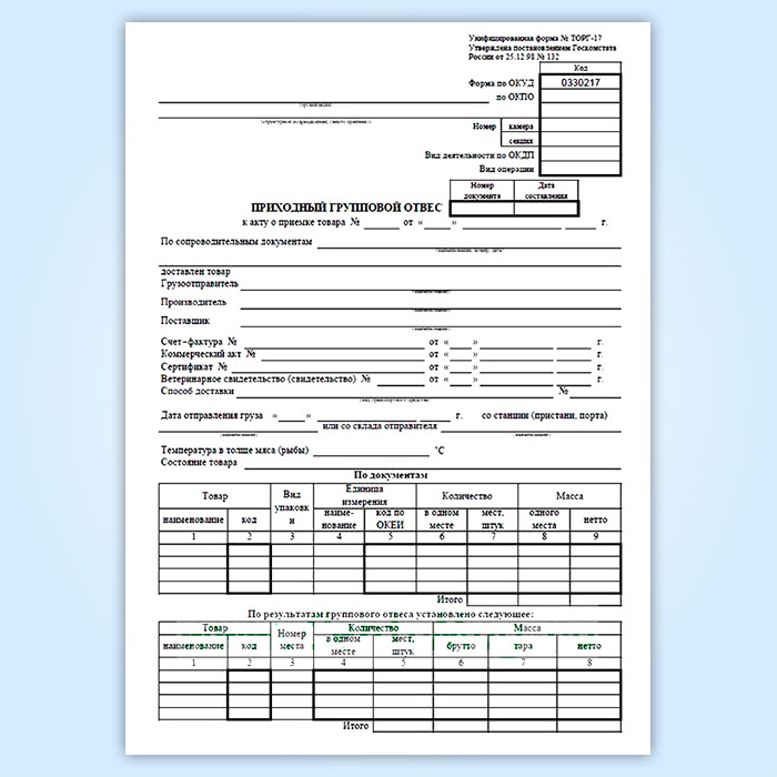 Журнал приходный групповой отвес (форма № ТОРГ-17) в Рошале купить