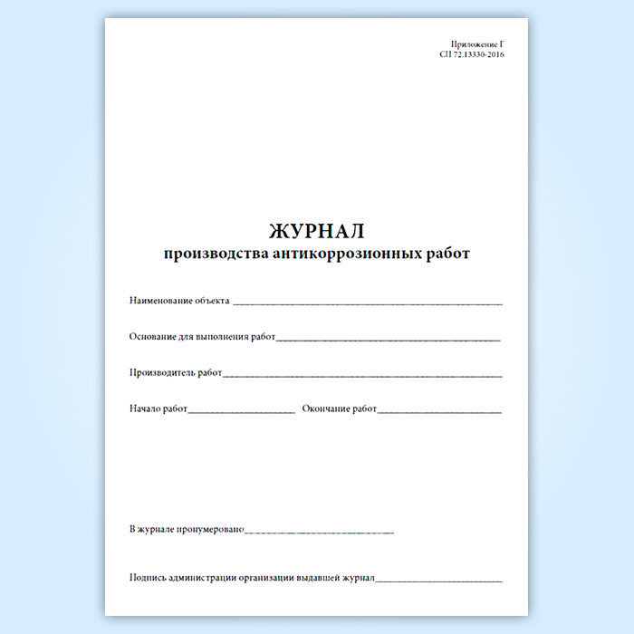 Журнал производства антикоррозионных работ в Рошале купить