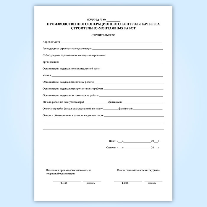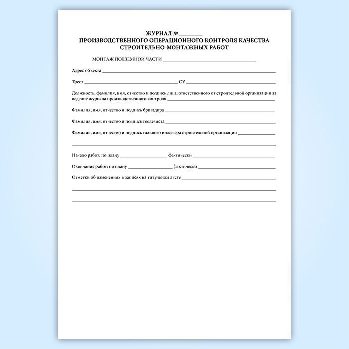 Журнал производственного операционного контроля качества строительно-монтажных работ в Рошале купить