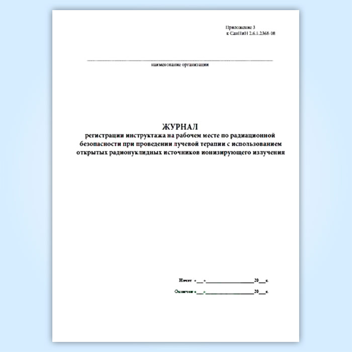 Журнал регистрации инструктажа на рабочем месте по радиационной безопасности при проведении лучевой терапии с использованием открытых радионуклиидных источников ионизирующего излучения в Рошале купить