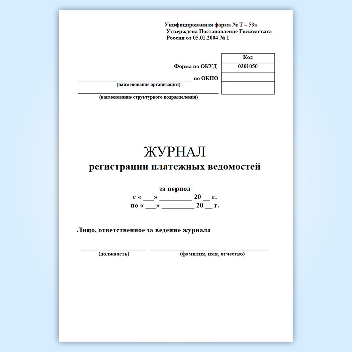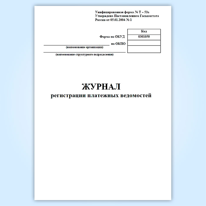 Журнал регистрации платежных ведомостей (унифицированная форма № Т-53а, форма по ОКУД 0301050) в Рошале купить