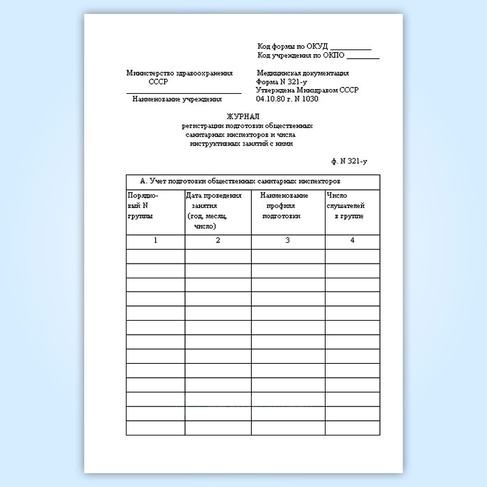 Журнал регистрации подготовки общественных санитарных инспекторов и числа инструктивных занятий с ними (форма № 321-у) в Рошале купить