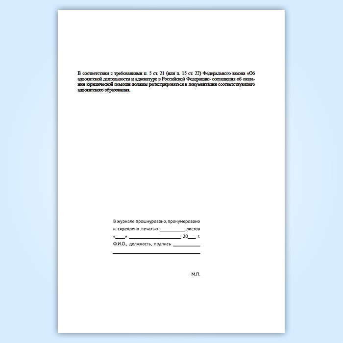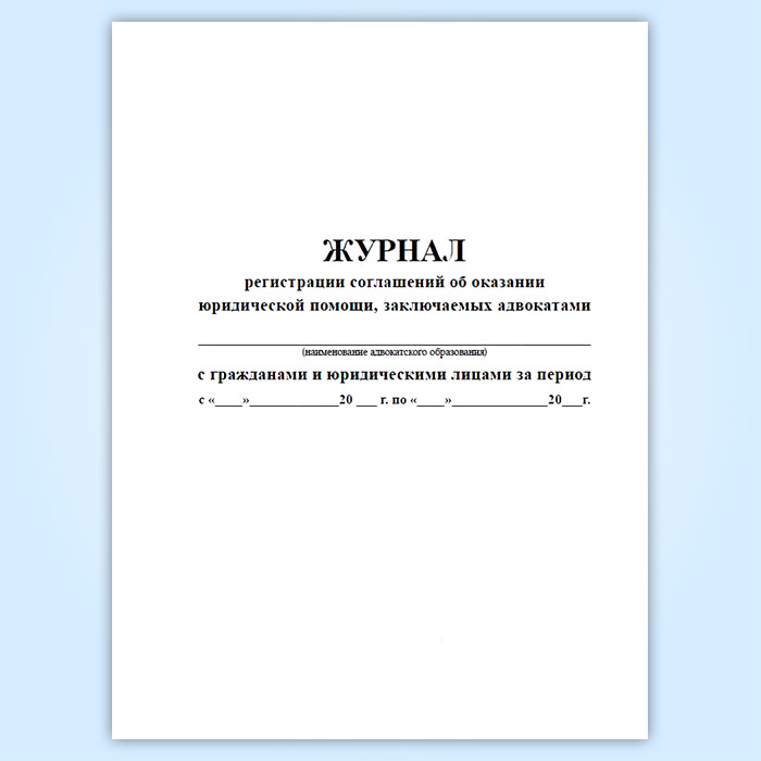Журнал регистрации соглашений об оказании юридической помощи, заключаемых адвокатами с гражданами и юридическими лицами в Рошале купить