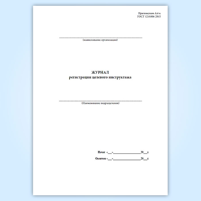 Журнал регистрации целевого инструктажа (ГОСТ 12.0.004-2015) в Рошале купить