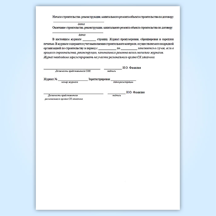 Журнал строительного контроля подрядной организации в Рошале купить