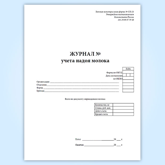 Журнал учета надоя молока (форма № СП-21) в Рошале купить