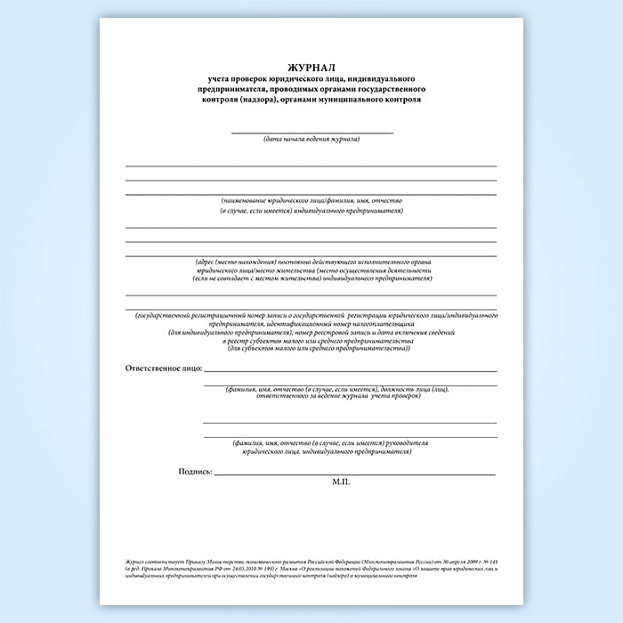 Журнал учета проверок юридического лица, индивидуального предпринимателя, проводимых органами государственного контроля (надзора), органами муниципального контроля (новый) в Рошале купить
