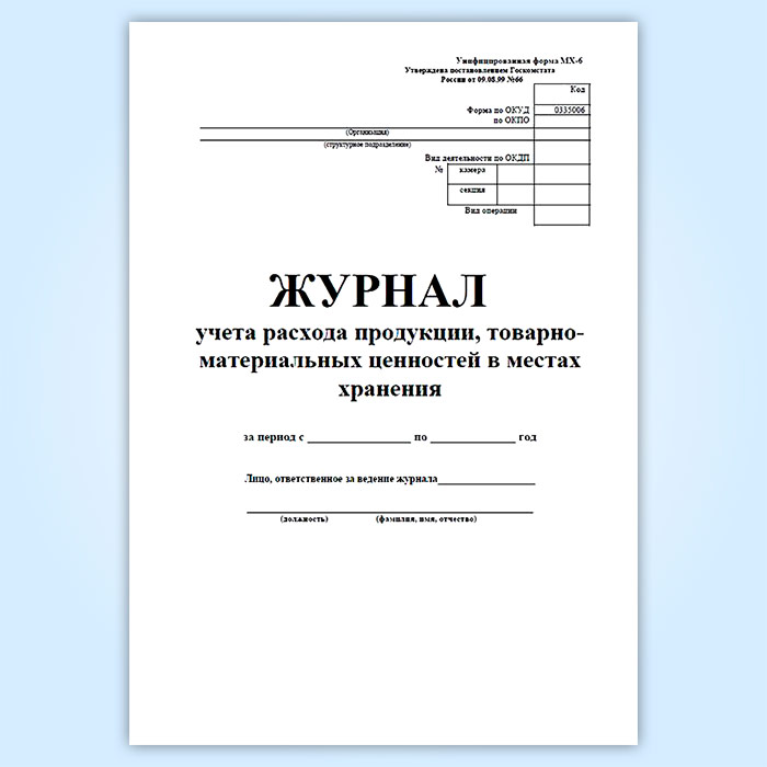 Журнал учета расхода продукции, товарно-материальных ценностей в местах хранения (форма МХ-6) в Рошале купить