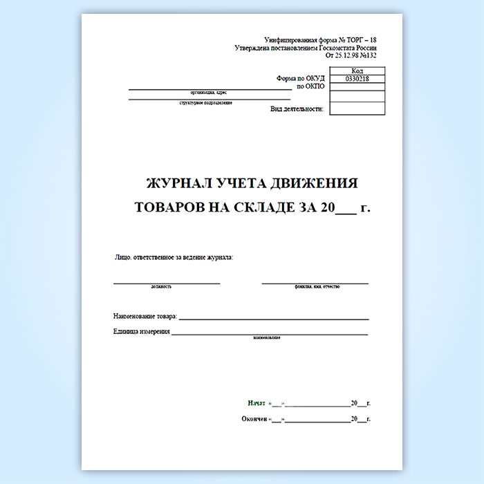 Журнал учета товаров на складе (форма ТОРГ-18) в Рошале купить