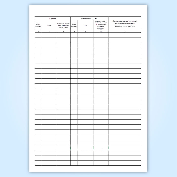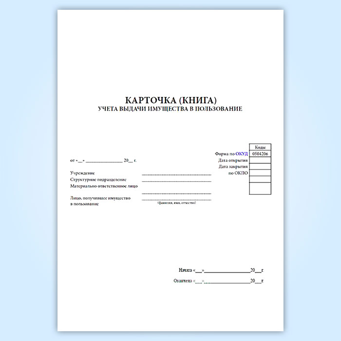 Карточка (книга) учета выдачи имущества в пользование (форма по ОКУД 0504206) в Рошале купить