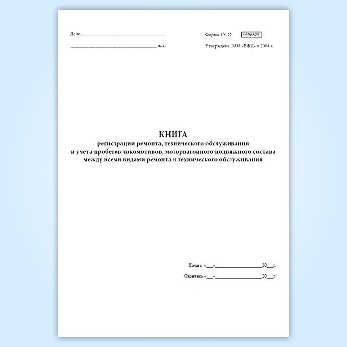 Книга регистрации ремонта, технического обслуживания и учета пробегов локомотивов, моторвагонного подвижного состава между всеми видами ремонта и технического обслуживания (форма ТУ-27) в Рошале купить