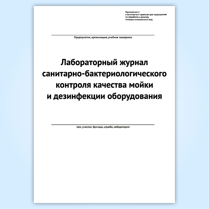 Лабораторный журнал санитарно-бактериологического контроля качества мойки и дезинфекции оборудования (форма 2) в Рошале купить