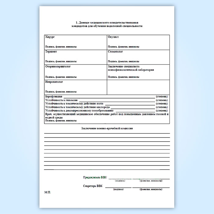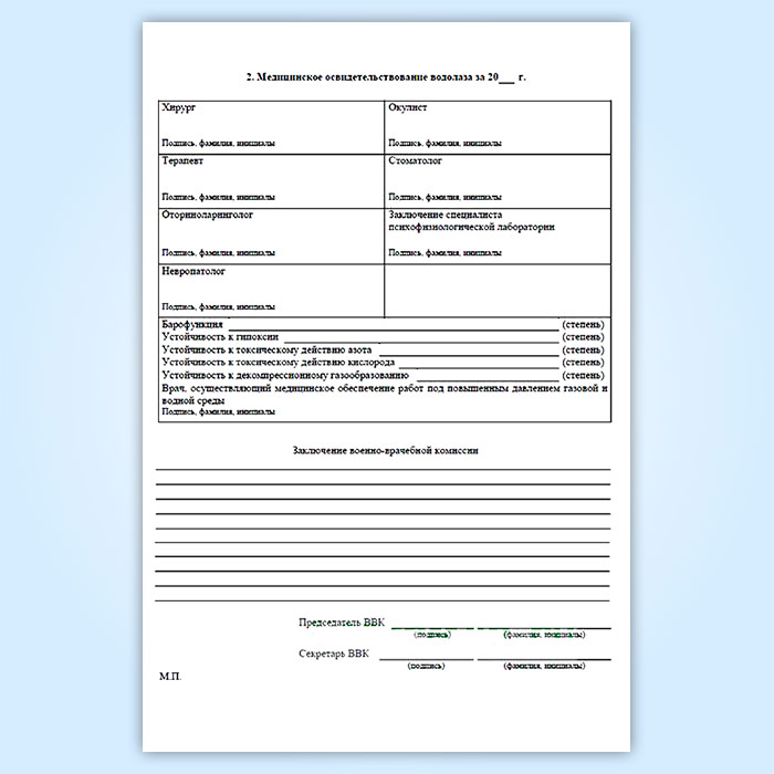 Медицинская книжка водолаза (МВД) в Рошале купить