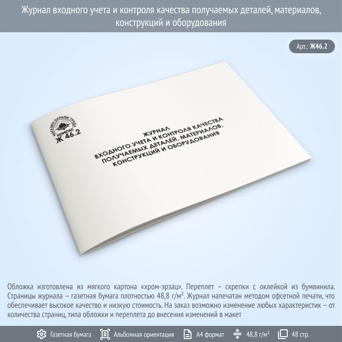 Журнал входного учета и контроля качества получаемых деталей, материалов, конструкций и оборудования (Ж46.2, 48 стр.) в Рошале купить