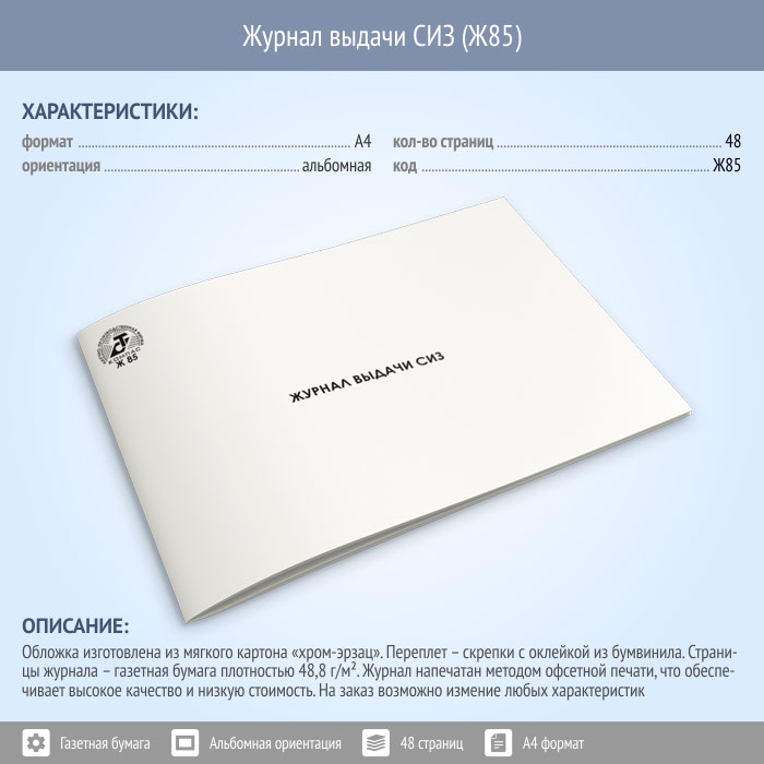 Журнал выдачи СИЗ (48 стр., Ж85) в Рошале купить
