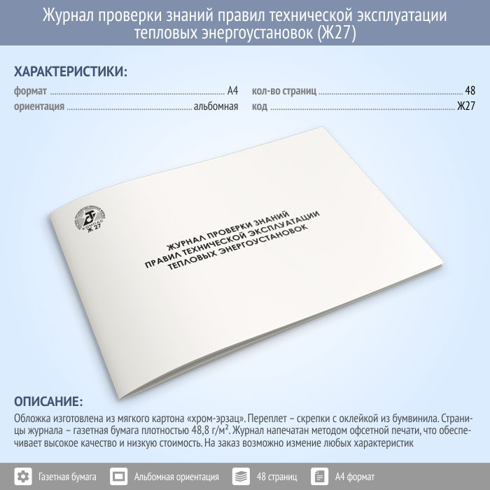 Журнал проверки знаний правил технической эксплуатации тепловых энергоустановок (48 стр., Ж27) в Рошале купить