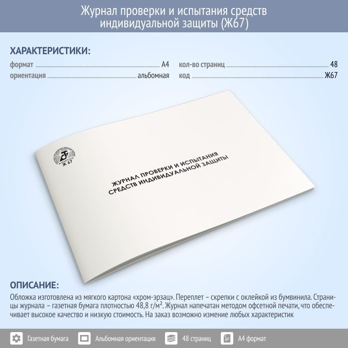 Журнал проверки и испытания средств индивидуальной защиты (48 стр., Ж67) в Рошале купить